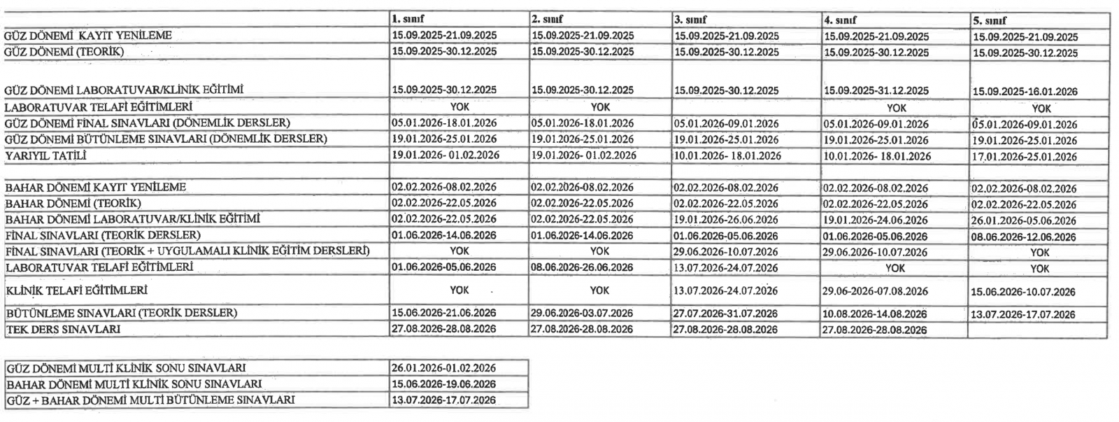Sınav Takvimi